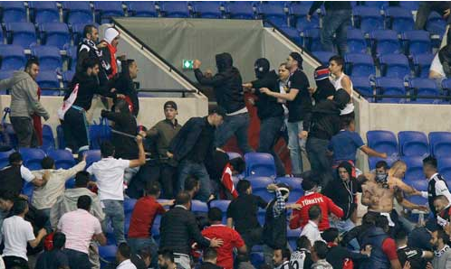 Trước khi trận đấu này đã được diễn ra thì chính CĐV 2 đội Lyon – Besiktas cũng đã có được ở trong màn lao vào nhau ẩu đả dữ dội ở trên khán đài. Tất cả những gì đã có thể ném được từ pháo sáng đó là bom khói và ghế cũng đã được những CĐV hiếu chiến đã ném về phía nhau.