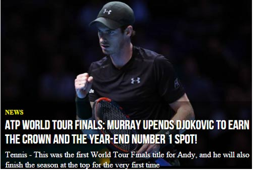 Trận đấu này cũng đã làm cho murray có được "Một mũi tên trúng 2 đích", chính tay vợt Andy Murray cũng đã làm được 1 điều tuyệt vời ấy ở trong trận chung kết của giải đấu danh giá nhất năm ATP World Tour Finals 2016. Có được chiến thắng trước tay vợt Novak Djokovic để có thể lần đầu tiên bước lên ngôi vô địch "Grand Slam" ở trong lần thứ 5 trong năm và  qua đó thì đã chắc chắn rằng lần đầu tiên có thể kết thúc năm với ngôi vị số 1 thế giới. Còn gì có thể tuyệt vời hơn lúc này! Xin chúc mừng tay vợt  Andy người hùng Vương Quốc Anh đã dậy sóng.